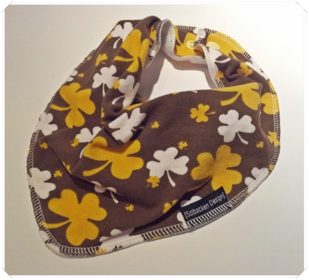 Ny och unik "dregglis"/scarf/haklapp/halskrage med klövermotiv. Vit fleecebaksida som håller torrt och varmt.Matchande tryckknappar bak. Två lägen för reglerbar knäppning.