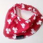 Ny och unik "dregglis"/scarf/haklapp/halskrage i rött med vita klöver.Vit fleecebaksida som håller torrt och varmt.Matchande tryckknappar bak. Två lägen för reglerbar knäppning.