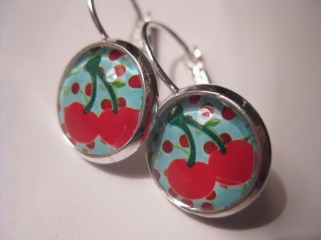 Retro øredobber. Totale lengde er 2,5 cm. Nikkel fri.Motivet er i glass og 12 mm stort