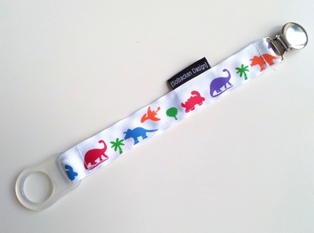 Napphållare i vitt med färgglada dinos.Motiv på båda sidorna.